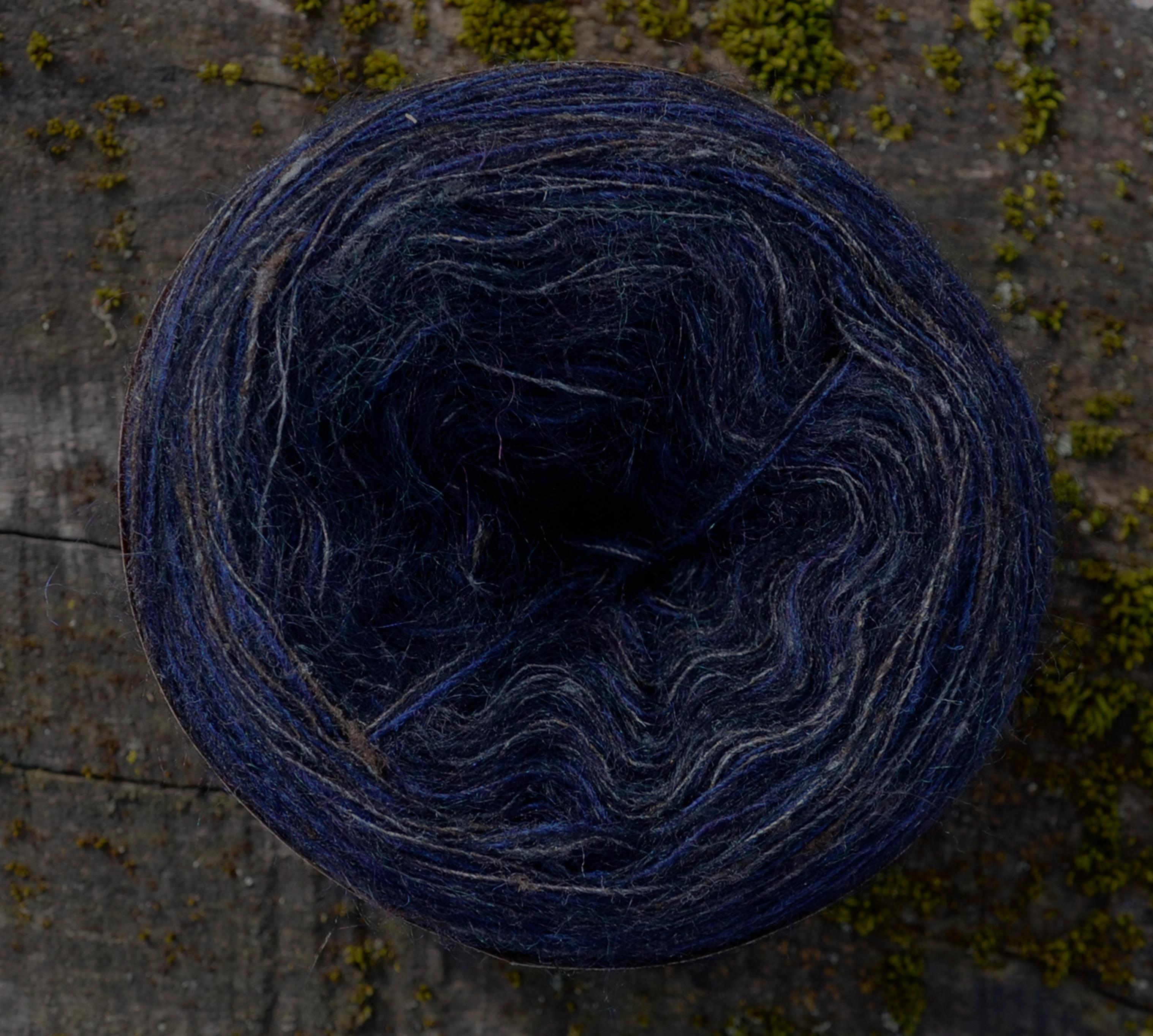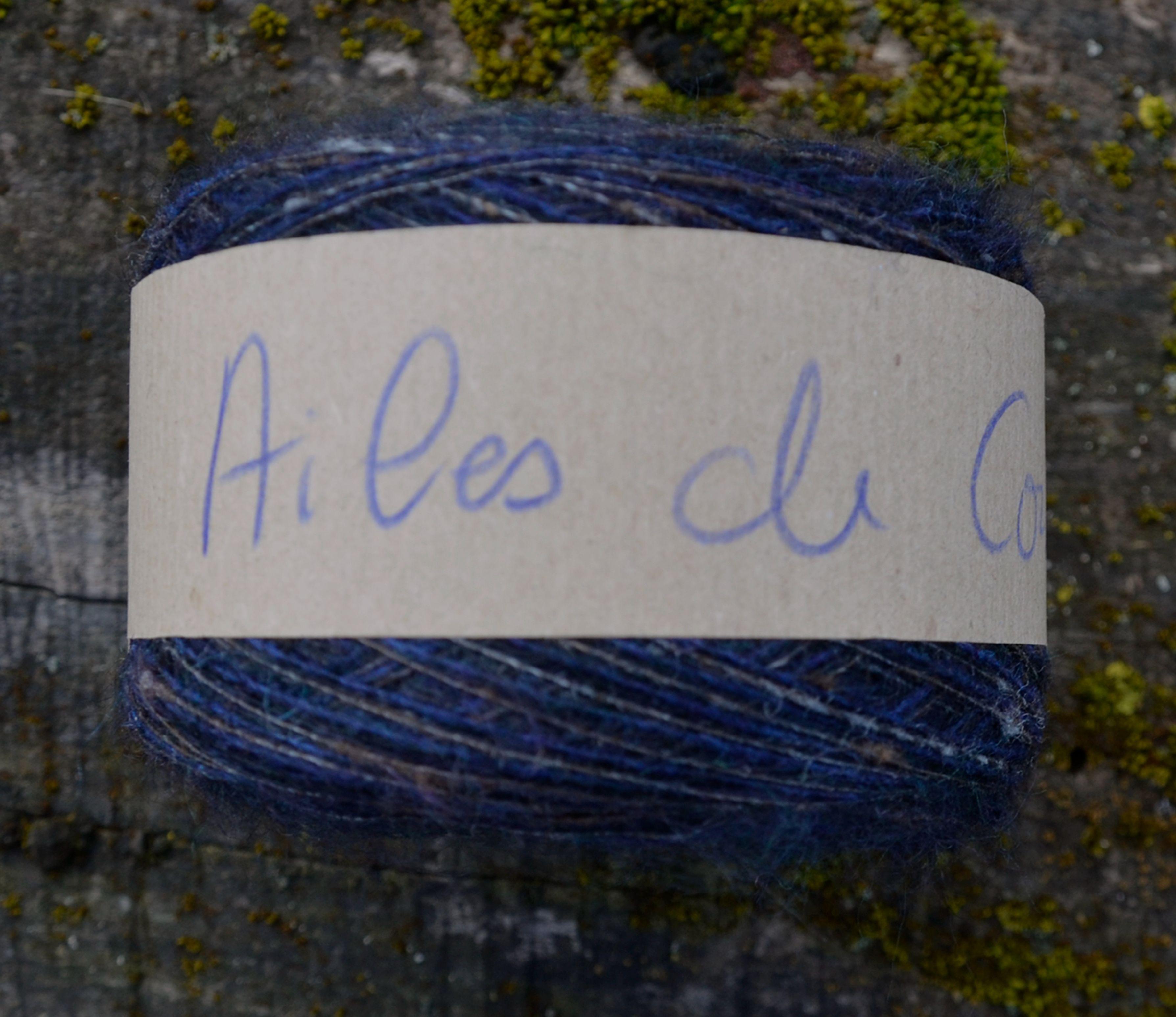 - le fil est composé de 4 fils ( 2 fils de mohair, 1 fil de laine, 1 fil de Tweed de soie)