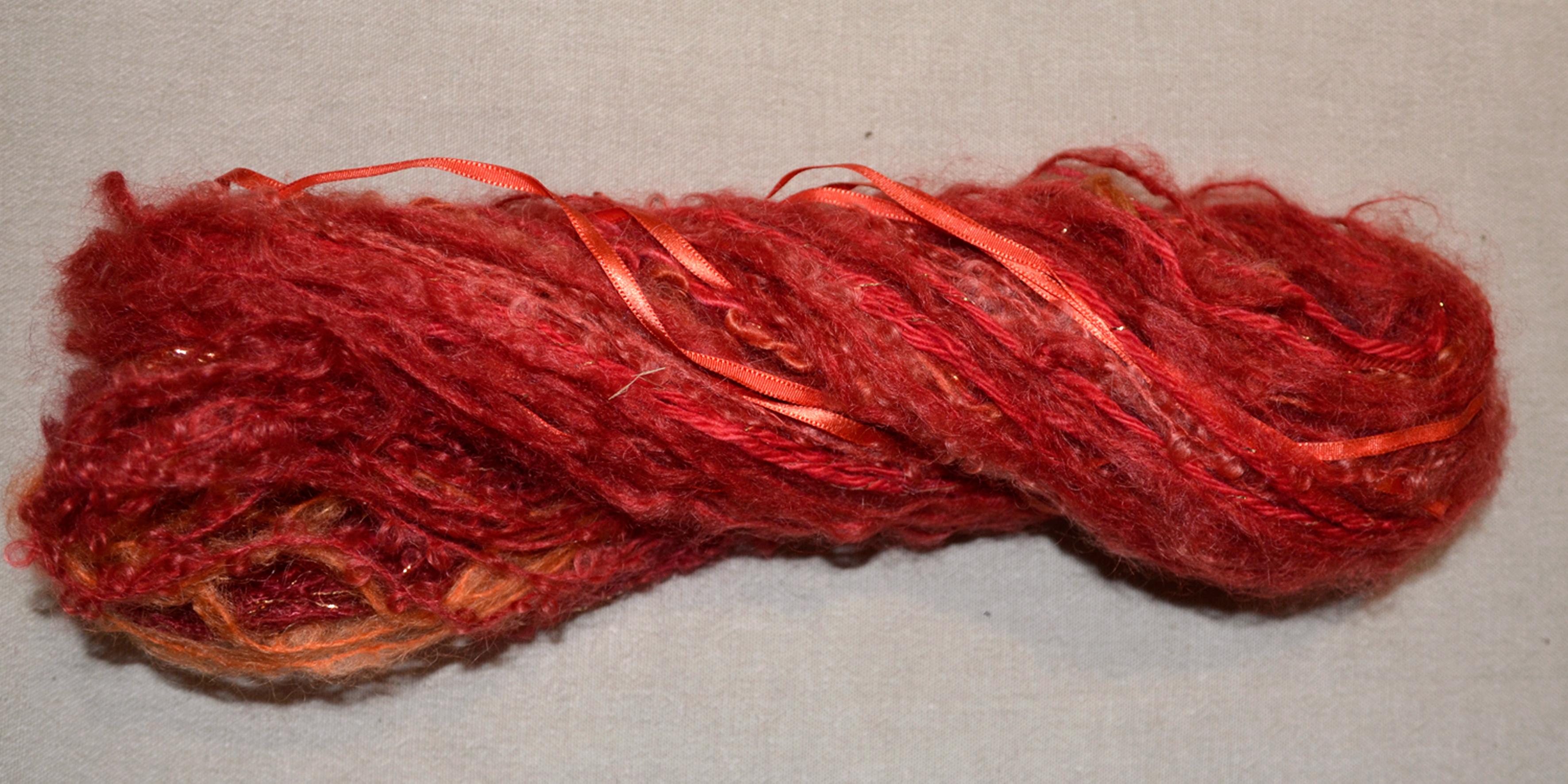 1 Echeveau Magic ball ; un écheveau composé de différentes matières assemblées à la main