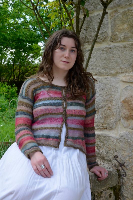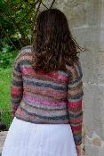 Des rangs raccourcis réalisés dans le bas de la veste cassent le rythme régulier des rayures du haut.