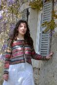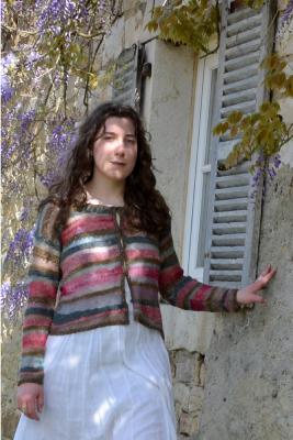 La cardigan Lucioles est réalisé avec différents fils de soie, mohair fin,, fil irrégulier et fil métallique Bronze.