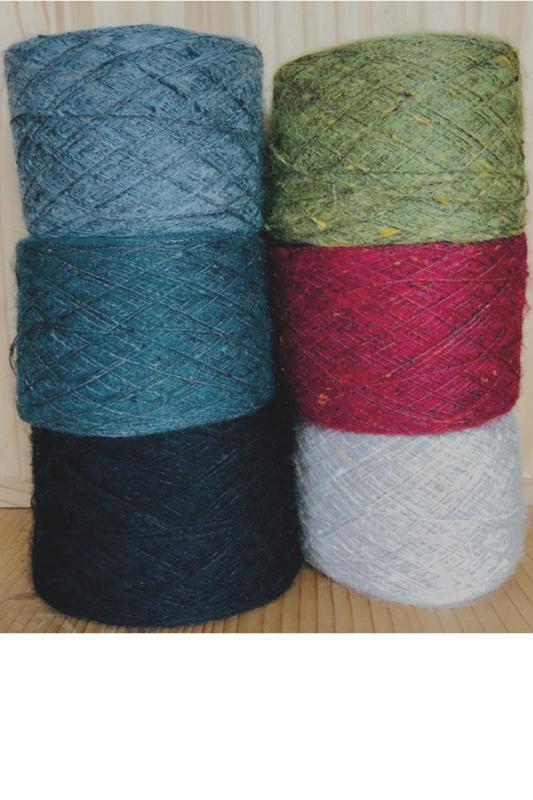 Le kit comprend : les fils en quantité nécessaire pour le châle, la fiche tricot, un label à coudre ELLE TRICOTE